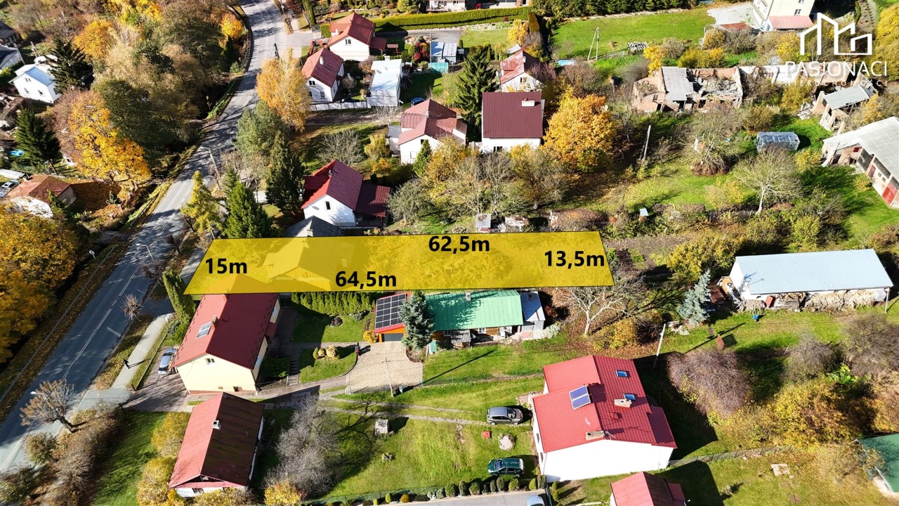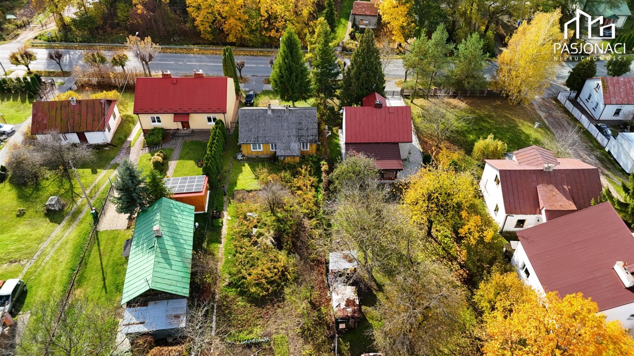 Na jednej z działek, położonej bezpośrednio przy ulicy, znajduje się dom z lat 60. o powierzchni ok. 90 m².