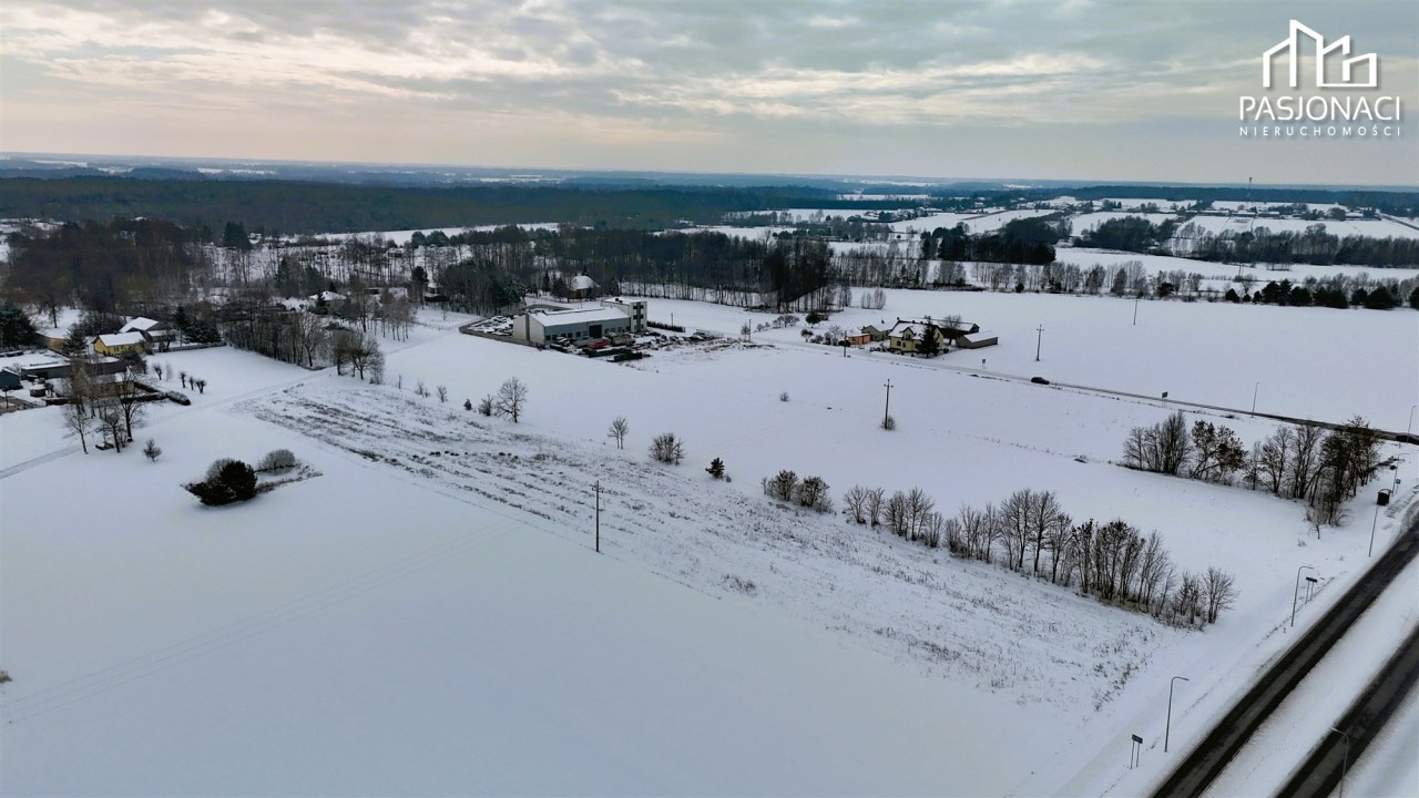 - szerokość frontowa od strony drogi wojewódzkiej – ok. 35 m,