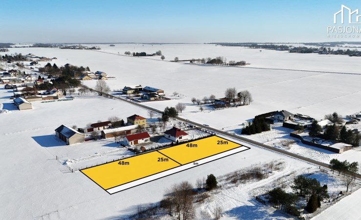 Nieruchomości położone są bezpośrednio przy asfaltowej drodze gminnej, co zapewnia wygodny dojazd przez cały rok oraz dostęp do pełnej infrastruktury. A bliskość lasu daje spokój i możliwości kontaktu z naturą.