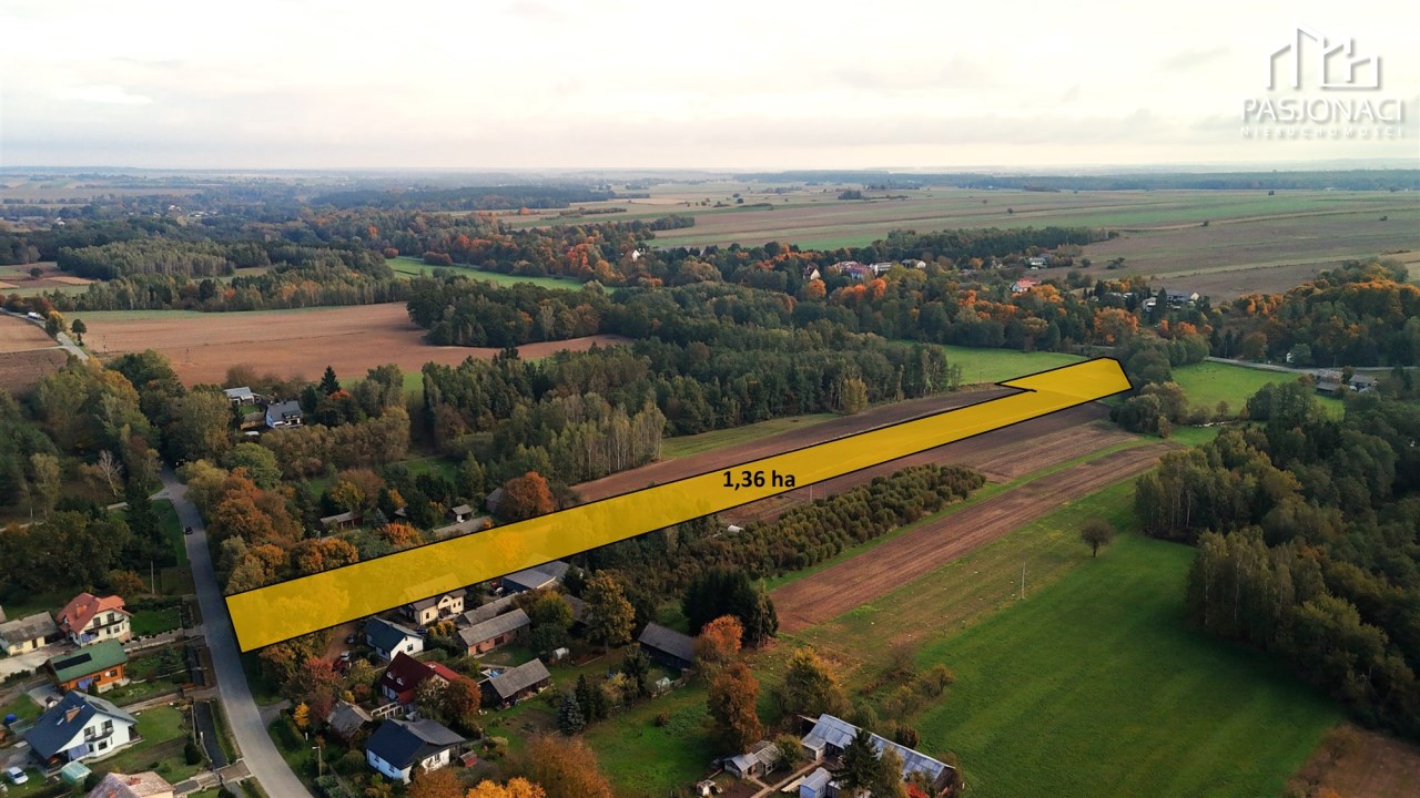 - Powierzchnia całkowita: 13 628 m2 (zabudowa jednorodzinna ok. 2300 m2, rola ok. 8000 m2, łąka ok. 3500 m2)