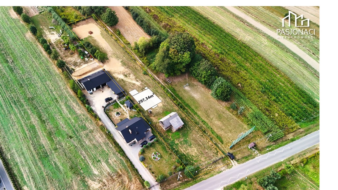 Do działki dołączony jest gotowy projekt budowlany domu jednorodzinnego Ares o powierzchni całkowitej 297,34 m², użytkowej 212,24 m² i zabudowy 99,78 m², o wymiarach w rzucie 10,14 m x 9,84 m. To nowoczesny, przestronny projekt idealny pod budowę na oferowanej działce.