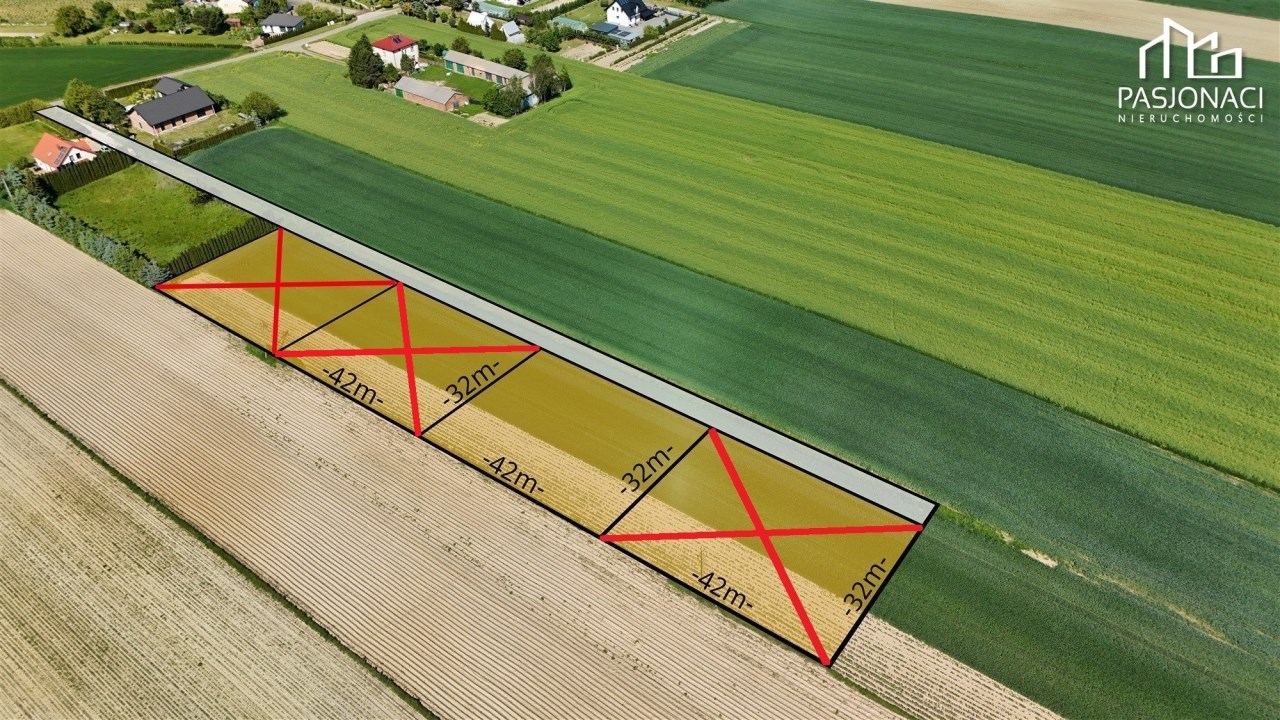 Działki o wymiarach 42 x 32 m, każda o powierzchni 1350m2 oraz udziałem w działce o nr 332/5 stanowiącej wewnętrzną drogę dojazdową.