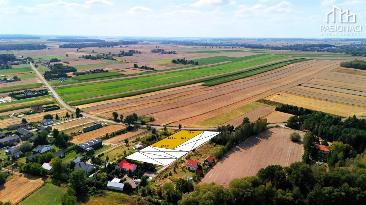 Działka położona jest w cichej części miejscowości, w otoczeniu nowej zabudowy jednorodzinnej oraz rozległych terenów zielonych.